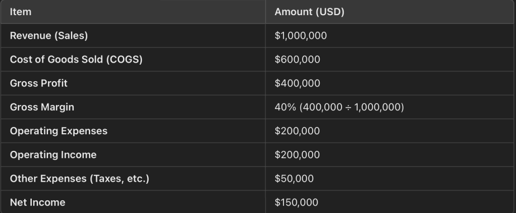 Gross Margin: Reflects pricing power and cost efficiency. A higher margin ensures sustainable profitability.