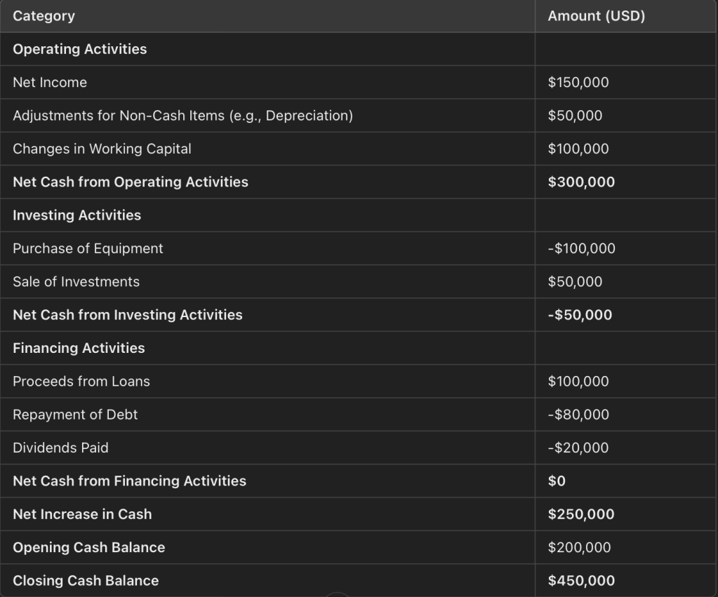 - Cash Flow Statement: Tracks the actual inflow and outflow of money (Cash Flow).